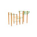 Stredne veľká zostava s niekoľkými horizontálnymi hrazdami rôznej výšky, vertikálnymi hrazdami, naklonenou rebrinou je doplnená dvoma dvojitými bradlami a vysunutou hrazdou.