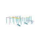 Veľká zostava s horizontálnymi hrazdami rôznych výšok, vertikálnymi hrazdami, bradlami, horizontálnymi a vertikálnymi rebríkmi je doplnená lomenou hrazdou, multi úchopovou hrazdou, multi segmentovou hrazdou, dvoma lavičkami ľah-sed a pole dance tyčou.